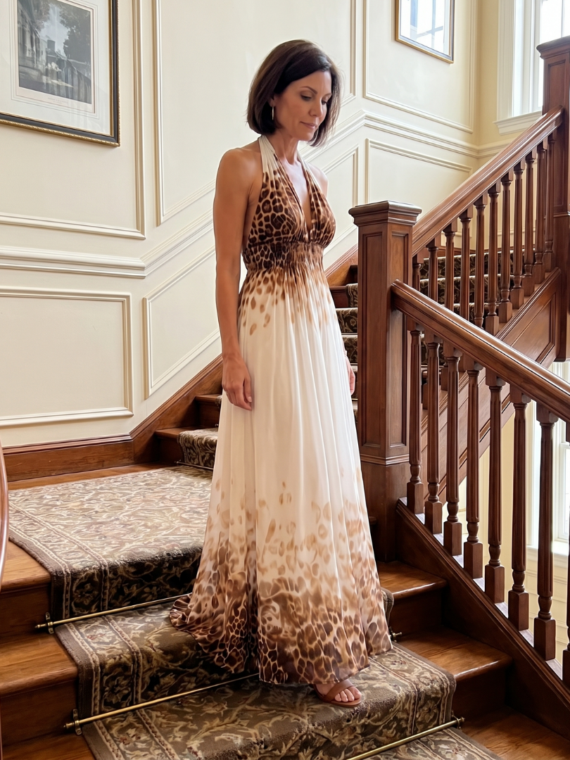 This dress features a V neckline with long sleeves and a flowing midi length in a soft floral pattern. The fabric is lightweight with gentle movement, offering comfort and ease throughout the day. It is shaped at the waist and falls into a full skirt that works well for both everyday wear and occasions.